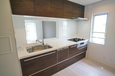 フローリング/システムキッチン/カウンターキッチン/追い焚き/シャワー/バス・トイレ別/シャワートイレ/室内洗濯機置場/コンロ三口/浴室乾燥機/バルコニー/エレベーター/角部屋/専用庭