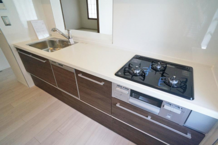 フローリング/システムキッチン/カウンターキッチン/追い焚き/シャワー/バス・トイレ別/シャワートイレ/室内洗濯機置場/コンロ三口/浴室乾燥機/バルコニー/エレベーター/角部屋/専用庭