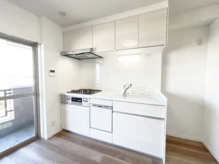 フローリング/システムキッチン/シャワー/バス・トイレ別/室内洗濯機置場/コンロ三口/バルコニー/エレベーター/都市ガス