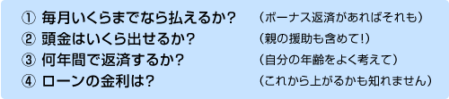 無理なく買えるマイホーム価格は以下の4つの項目で計算できます。