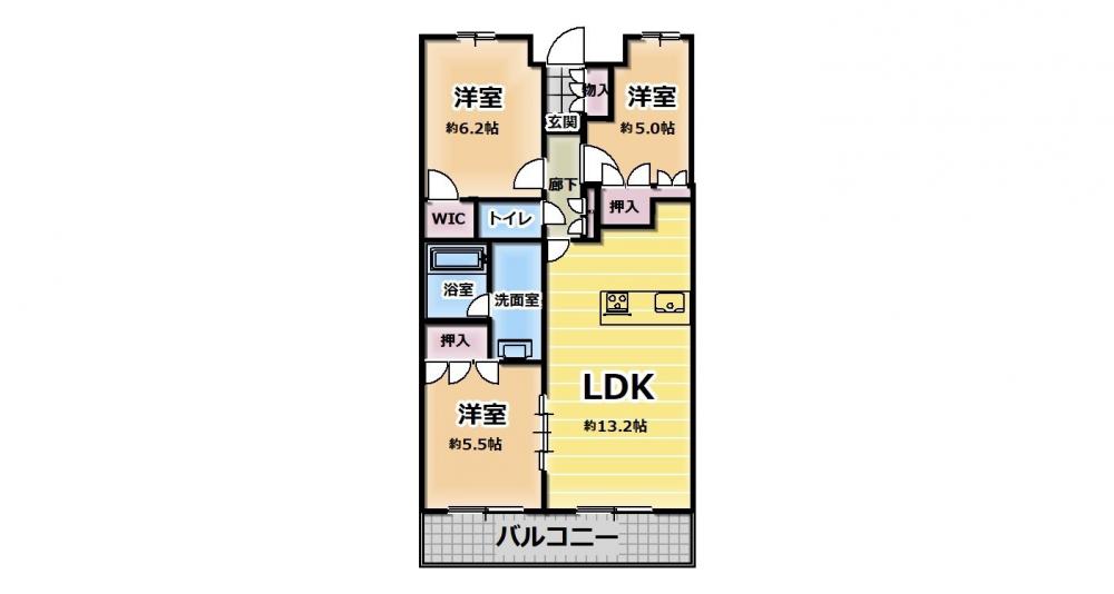 ●間取り図● LDK13.2帖、洋室6.2帖・5.5帖・5帖