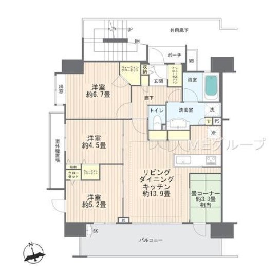 ■間取り図■ LDK約13.9帖、畳コーナー約3.3帖、洋室約6.7帖・約5.2帖・約4.5帖