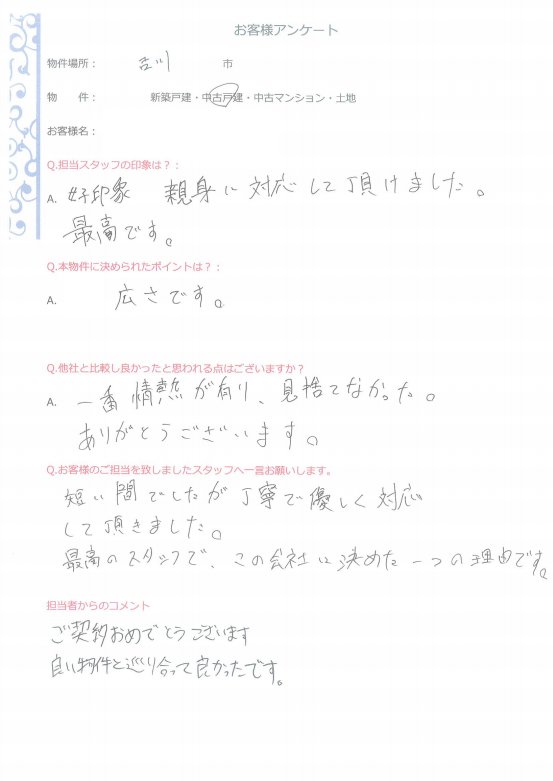 お客様のご担当を致しましたスタッフへ一言お願いします。: