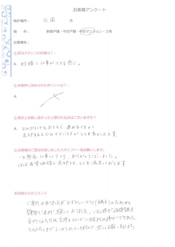 ほぼ希望価格で売却でき、とても満足しております。