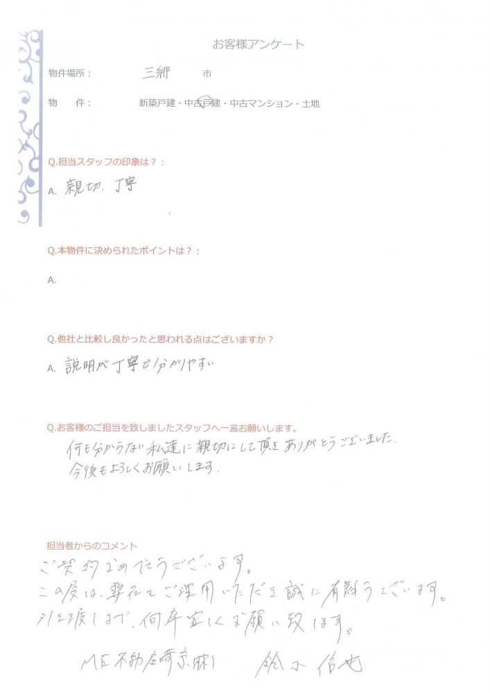 ご契約おめでとうございます。 この度は弊社をご利用いただき誠に有難うございます。 引き渡しまで何卒宜しくお願い致します。
